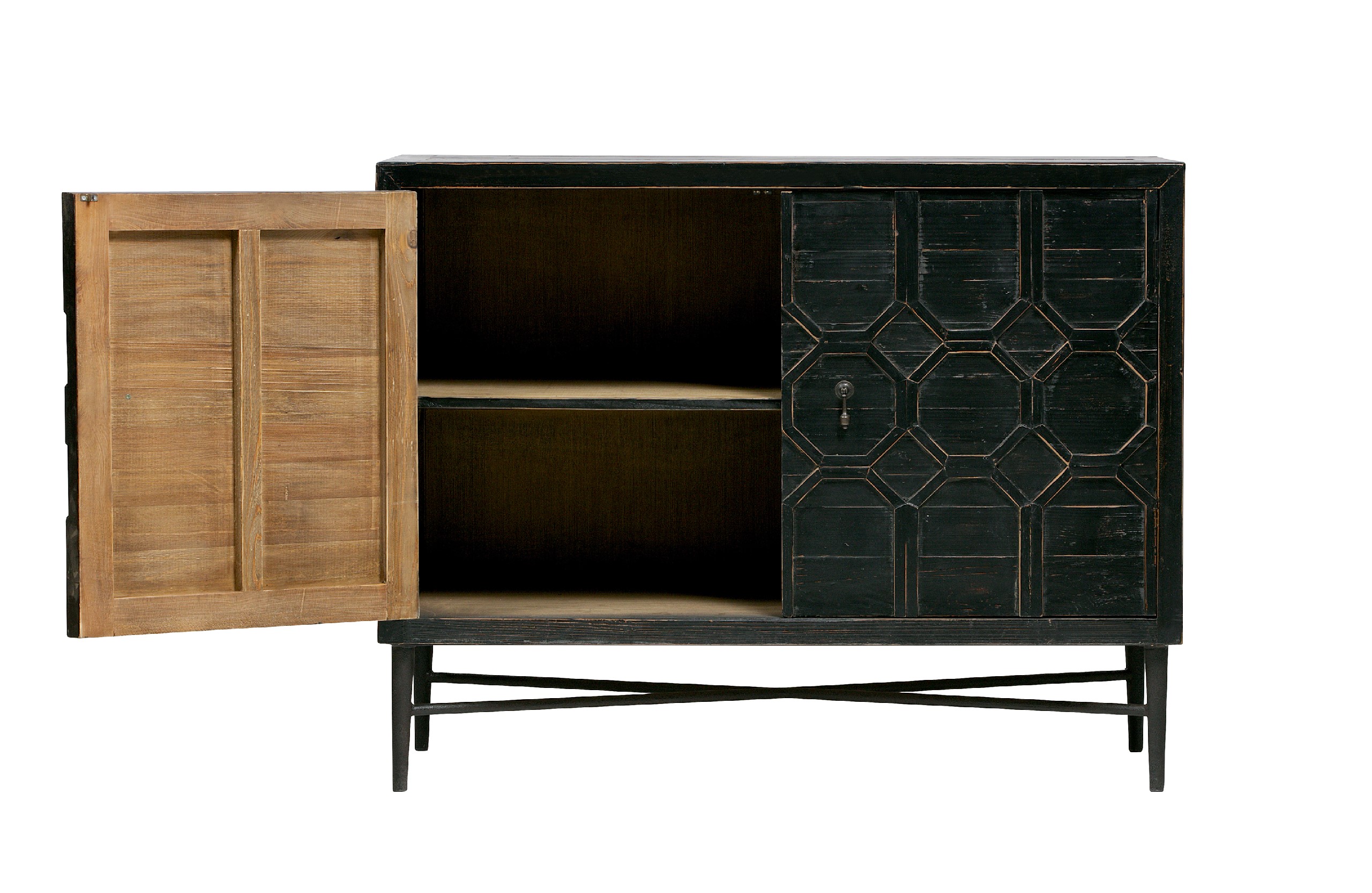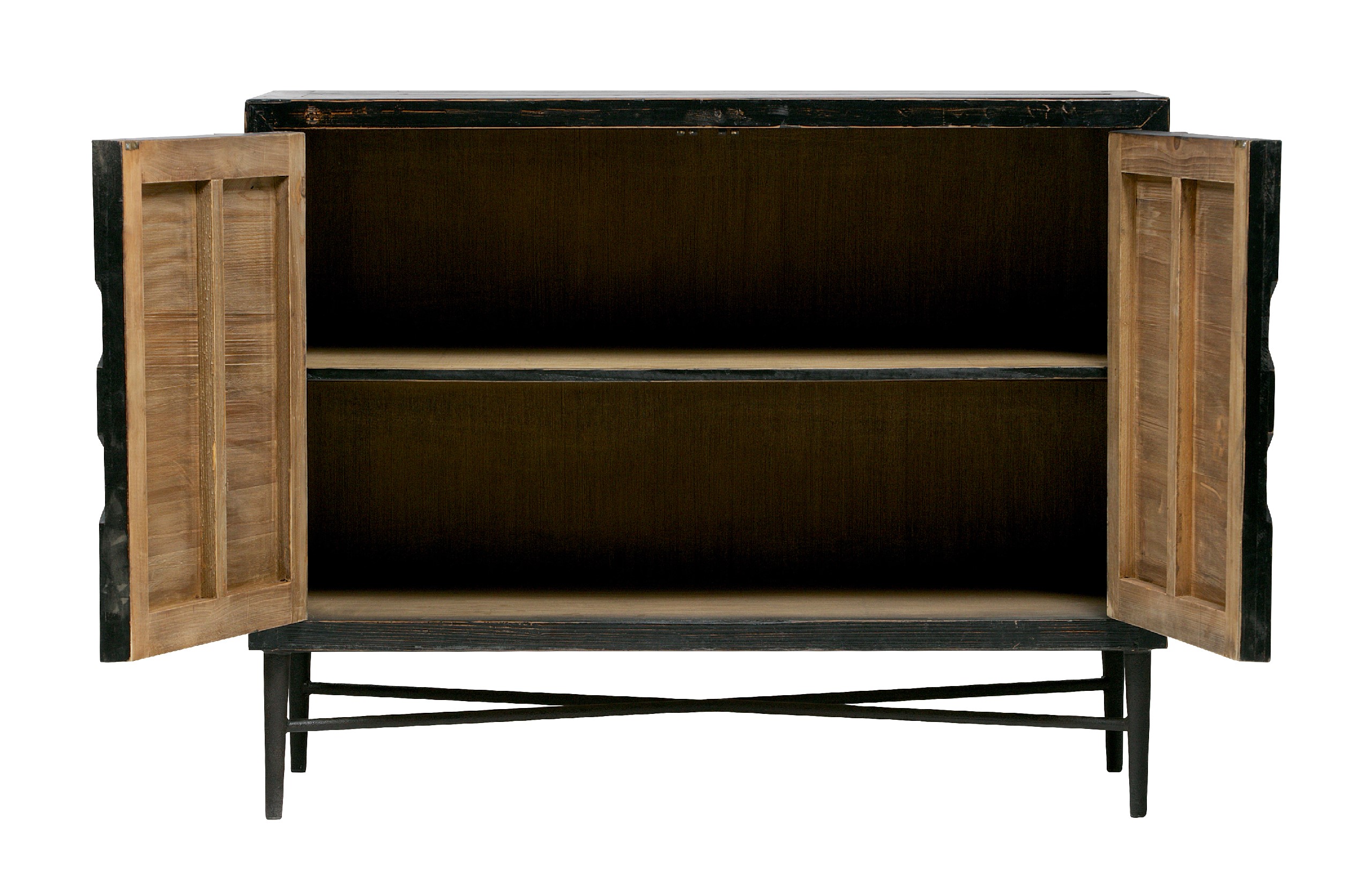 Sideboard made of pine wood with a metal base. It has 2 cupboards.