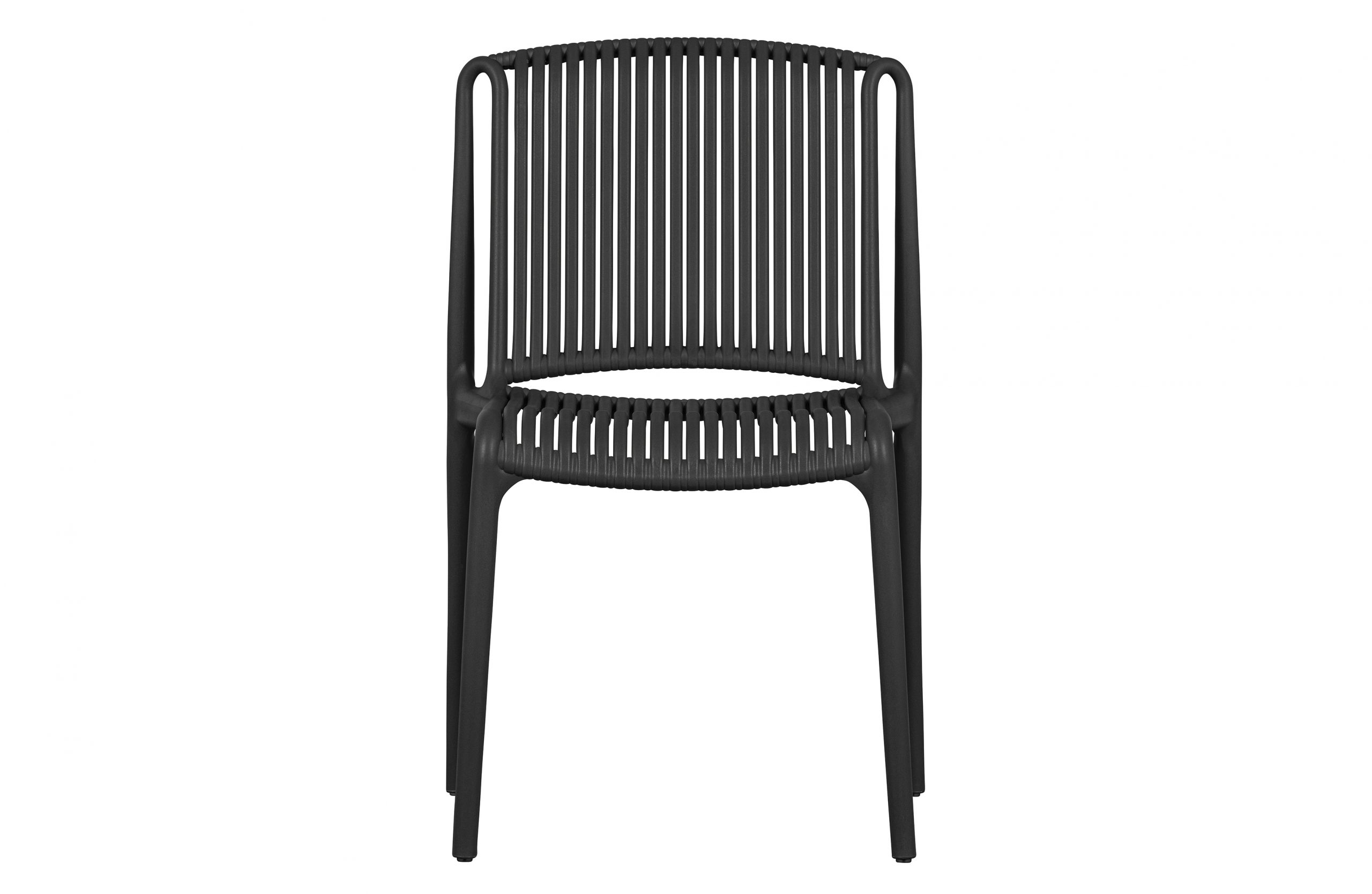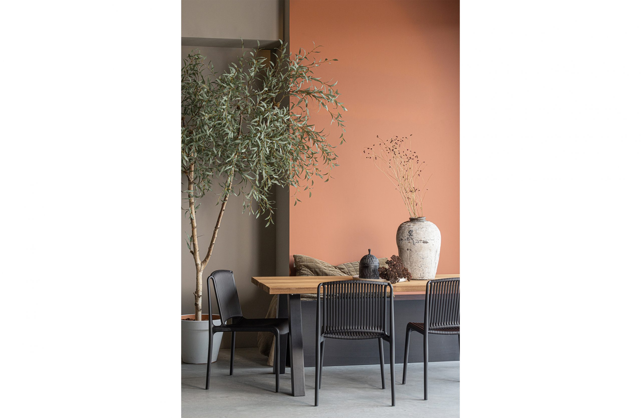 Polyester rattan chair and metal base. Assembly required. Warranty: 1 year. Made in Holland