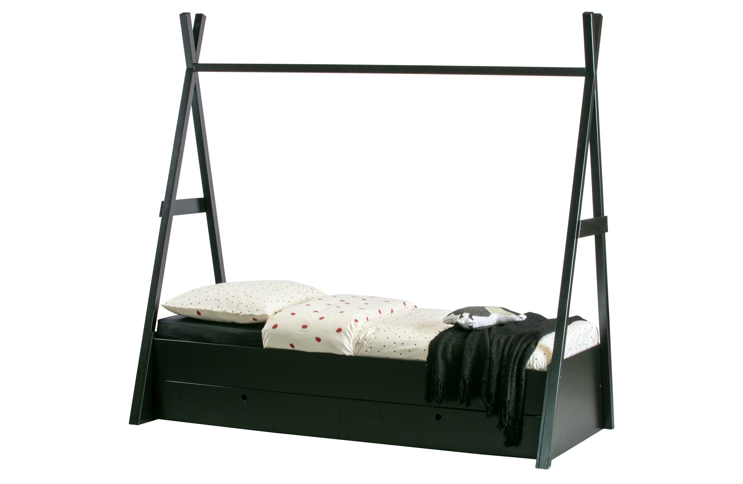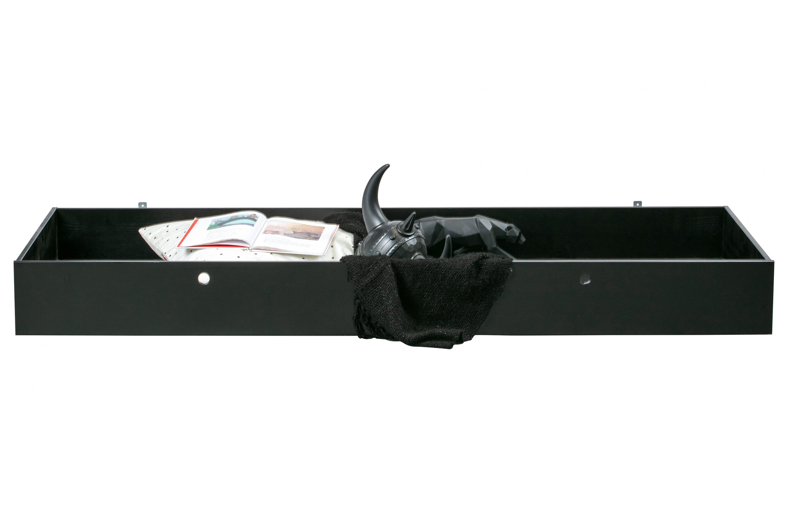 Storage drawer, made of pine wood, in black color for Joep beds.
