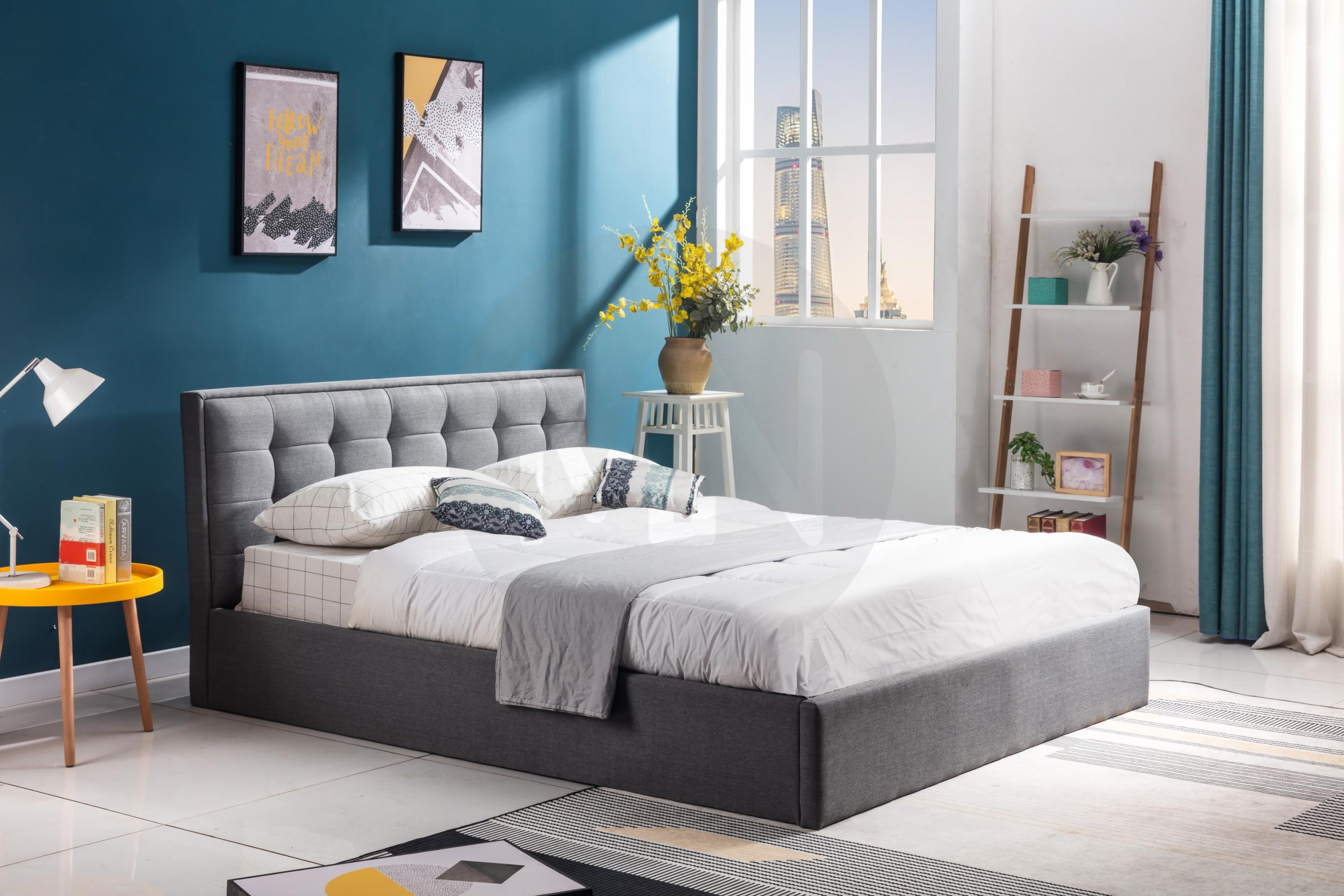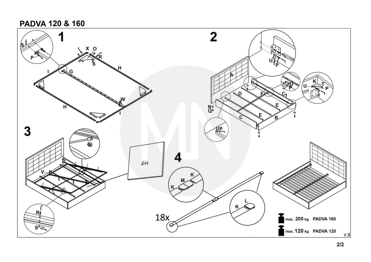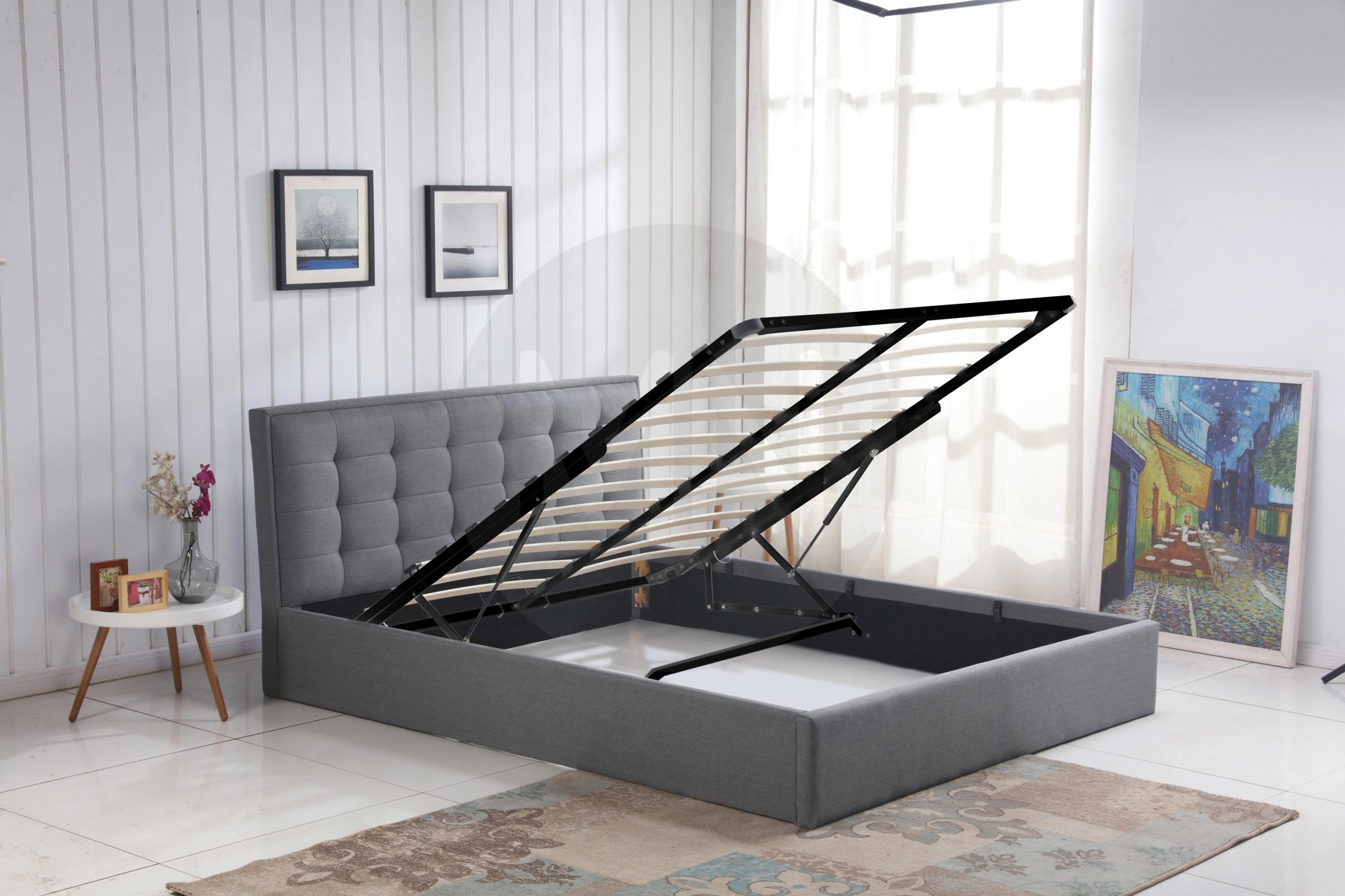 Bed, for mattress 160×200, with storage space.