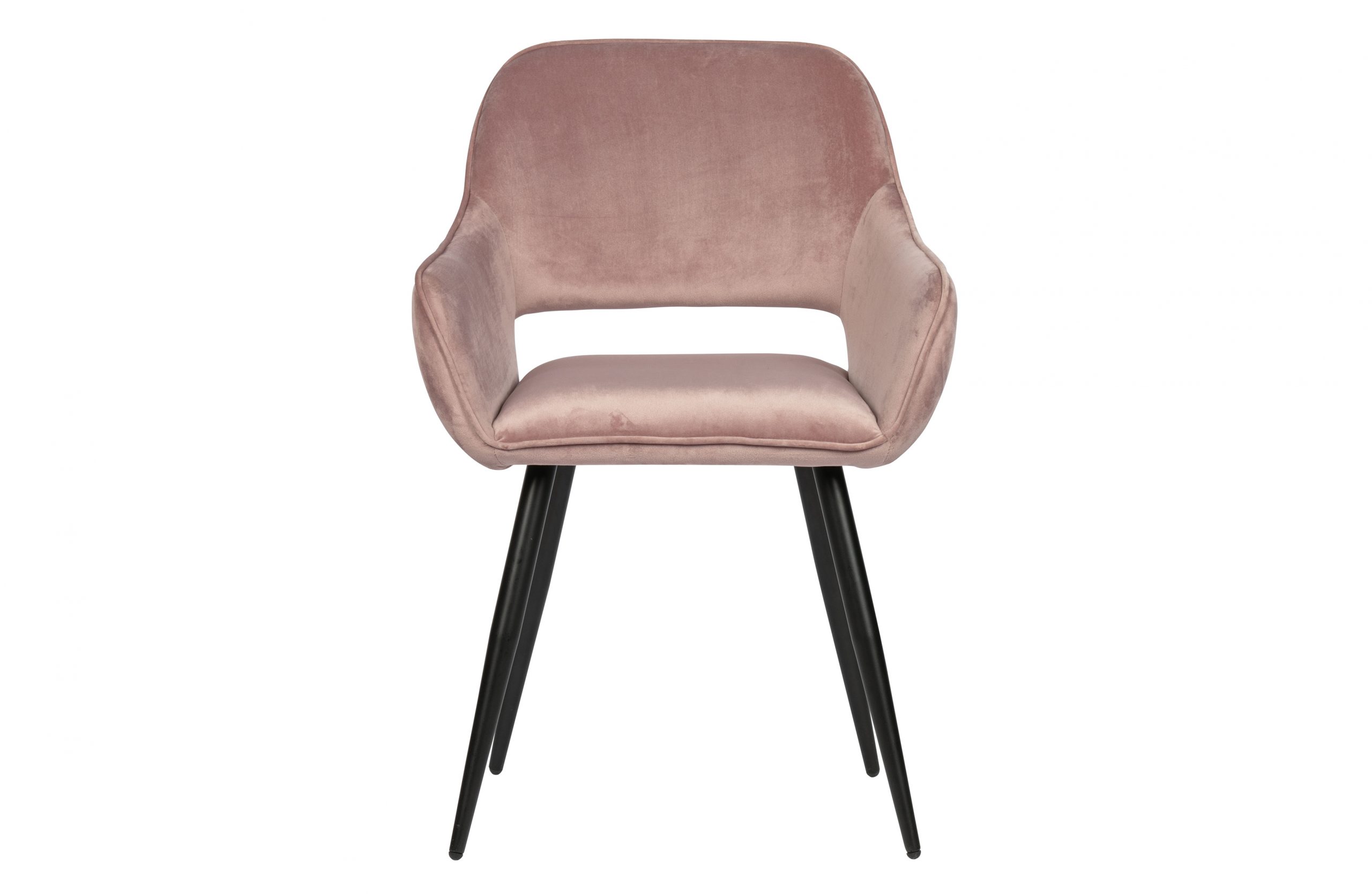 Set of 2 chairs upholstered in velvet fabric (grey, black, yellow, pink) or leather (brown) and metal legs. Dry cleaning.