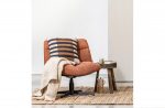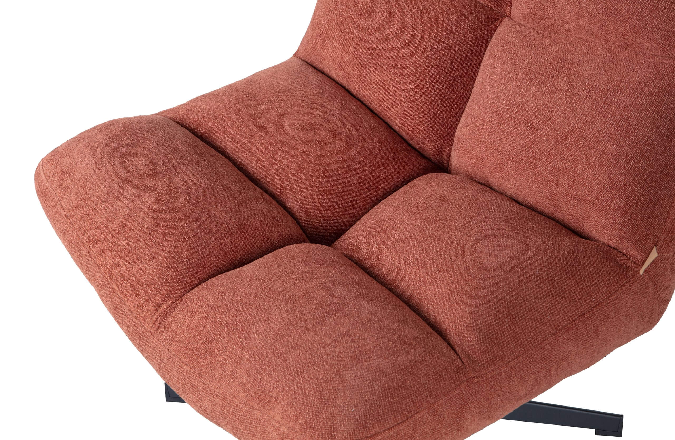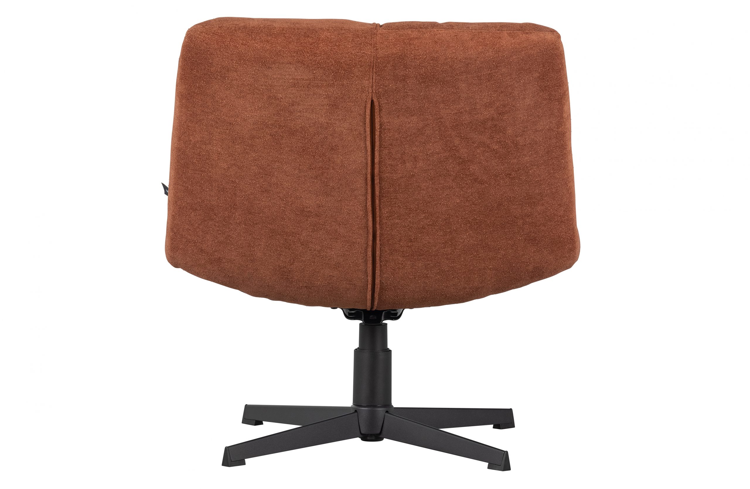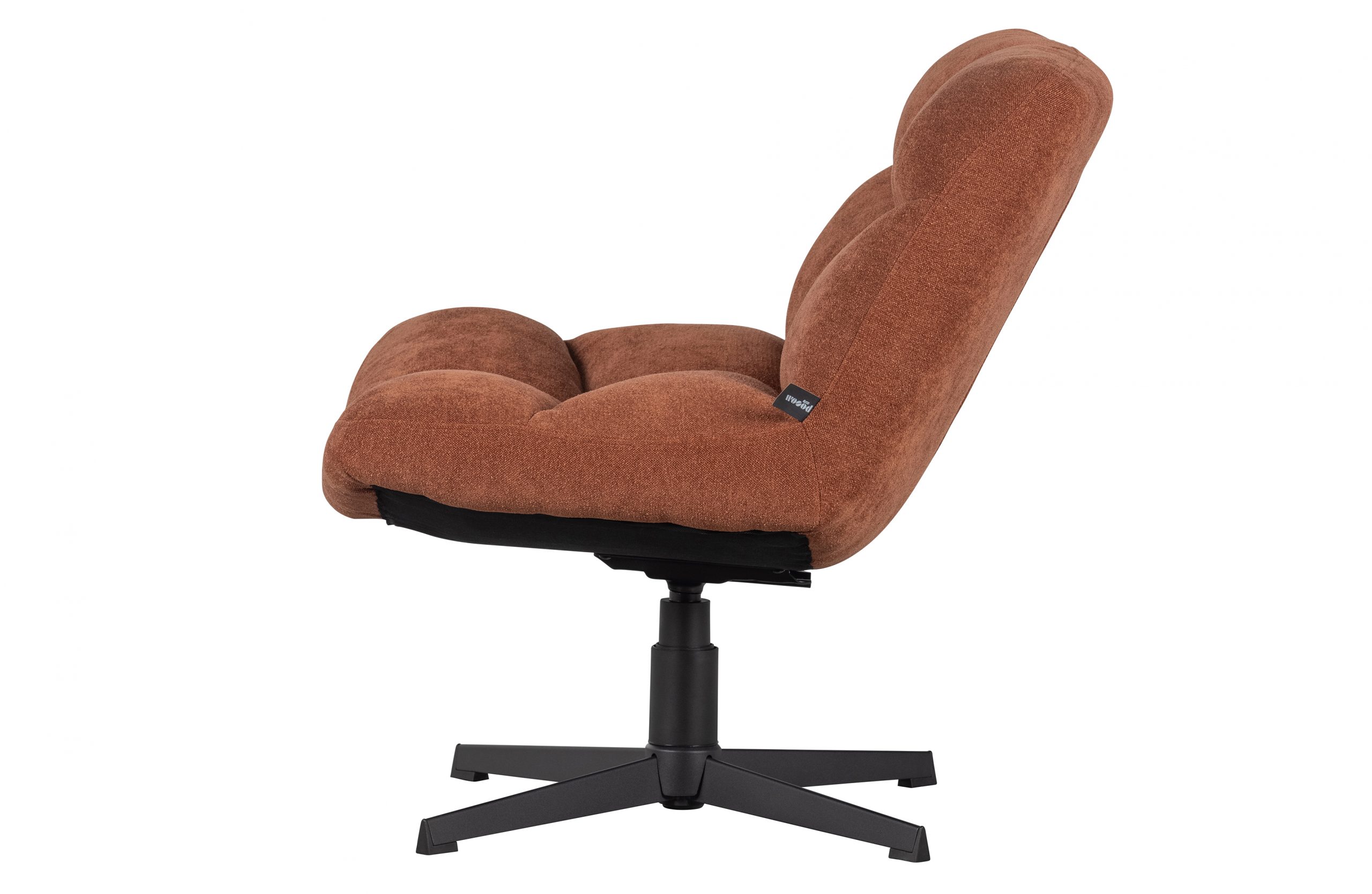 Swivel armchair upholstered in boucle fabric (100% polyester) with metal base.