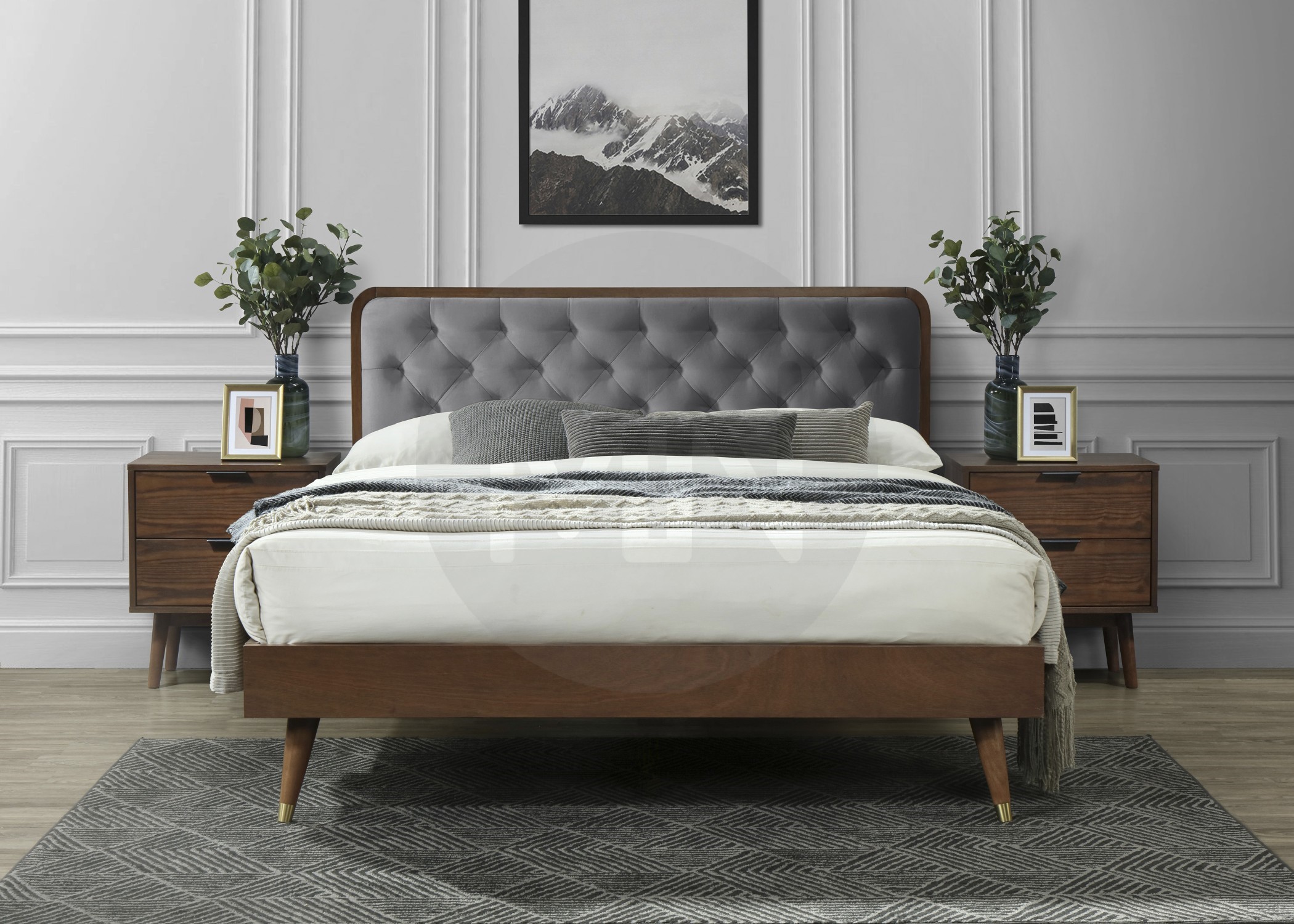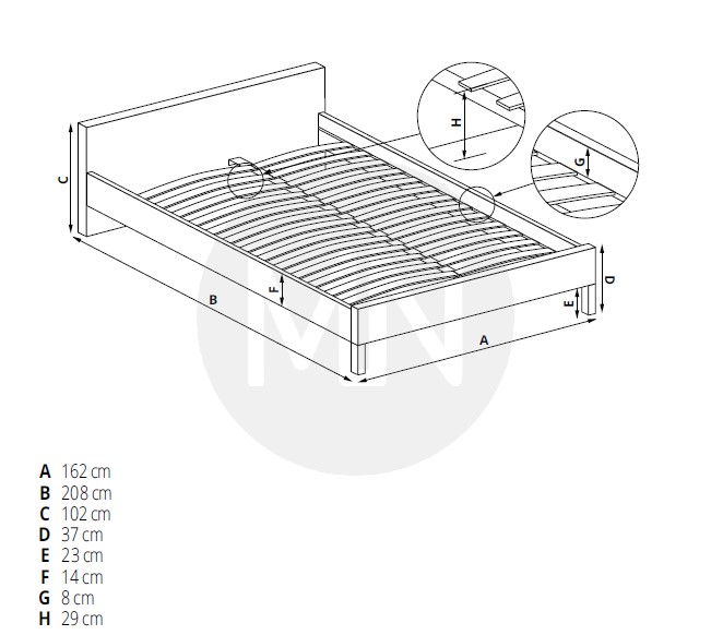 Κρεβάτι, για στρώμα 160×200, από MDF, καπλαμά και ξύλο rubberwood (καουτσουκόδεντρο).