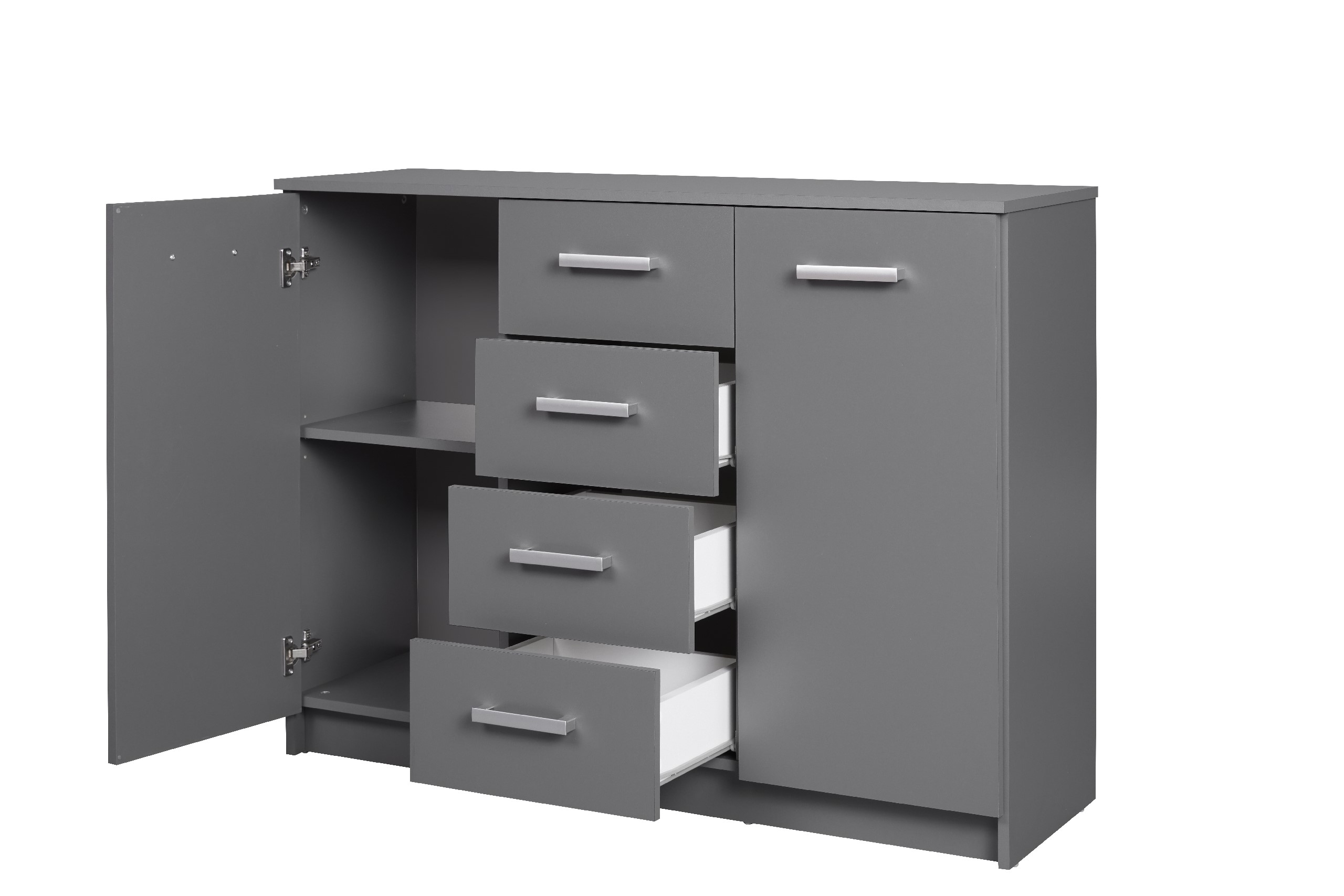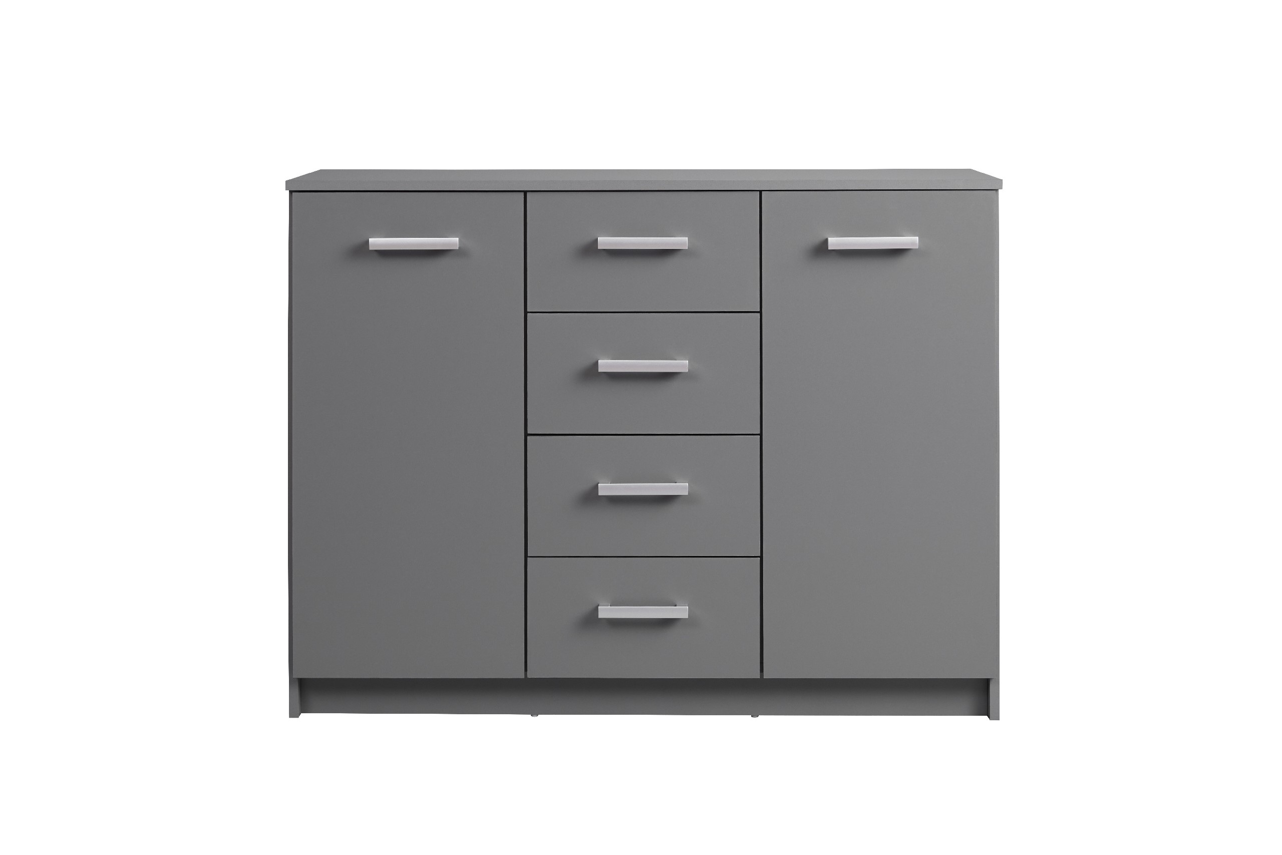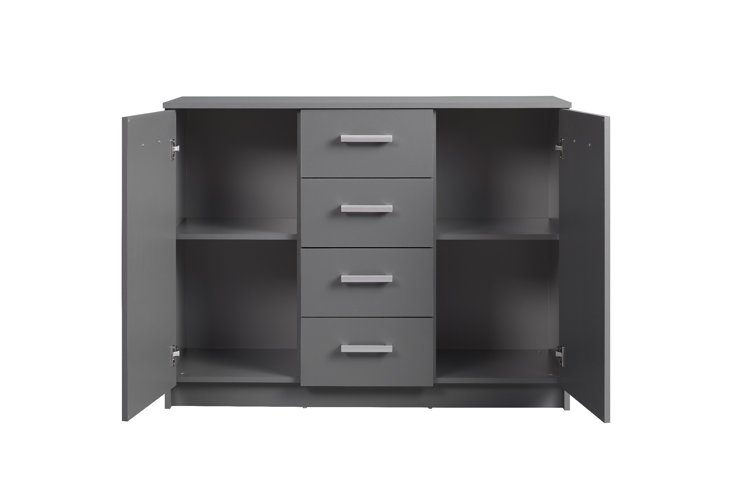 Μπουφές από μοριοσανίδα σε γκρι απόχρωση με 2 ντουλάπια και 4 συρτάρια.
