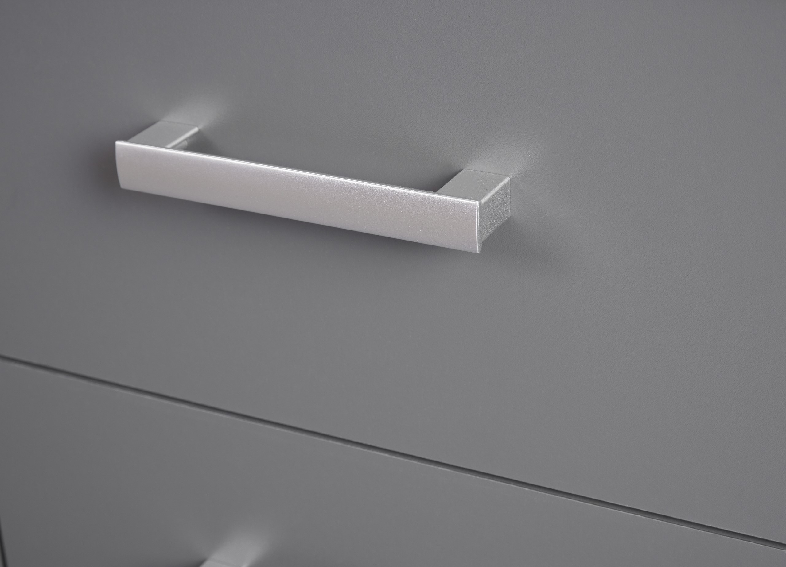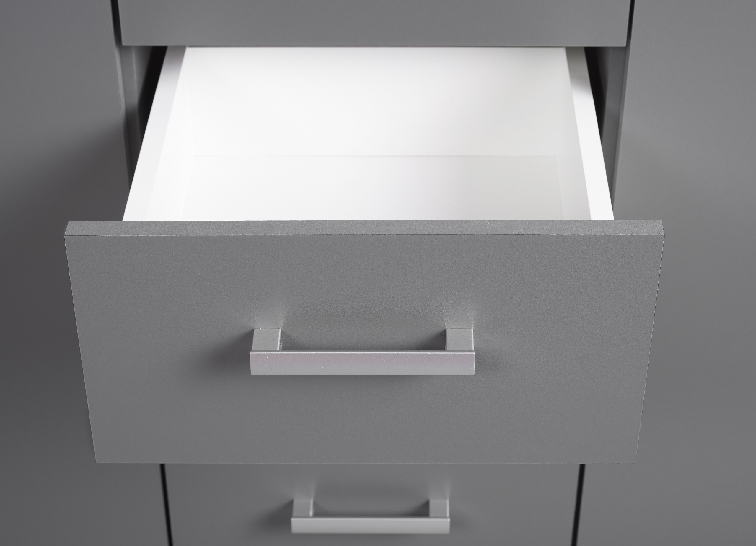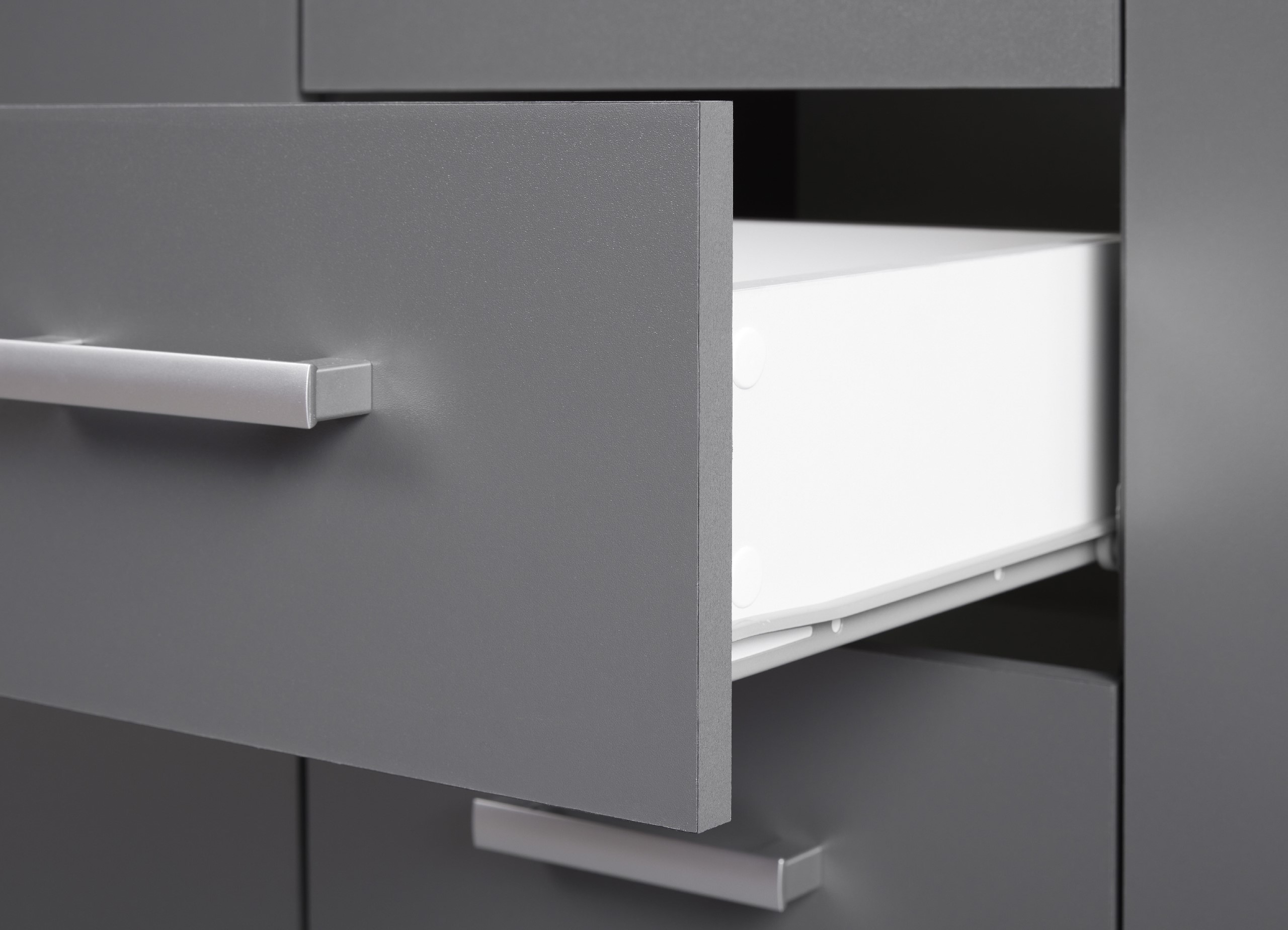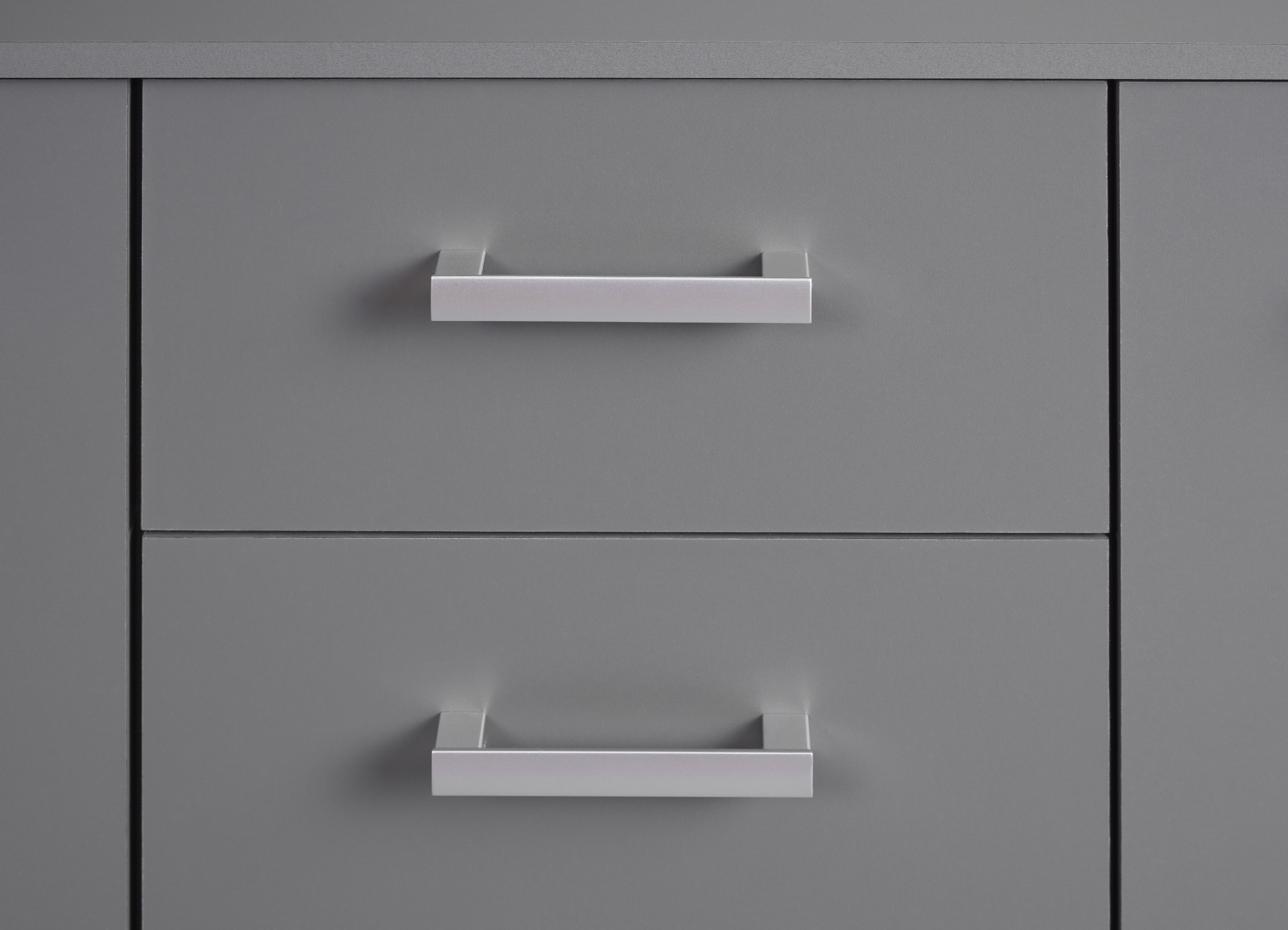 Μπουφές από μοριοσανίδα σε γκρι απόχρωση με 2 ντουλάπια και 4 συρτάρια.