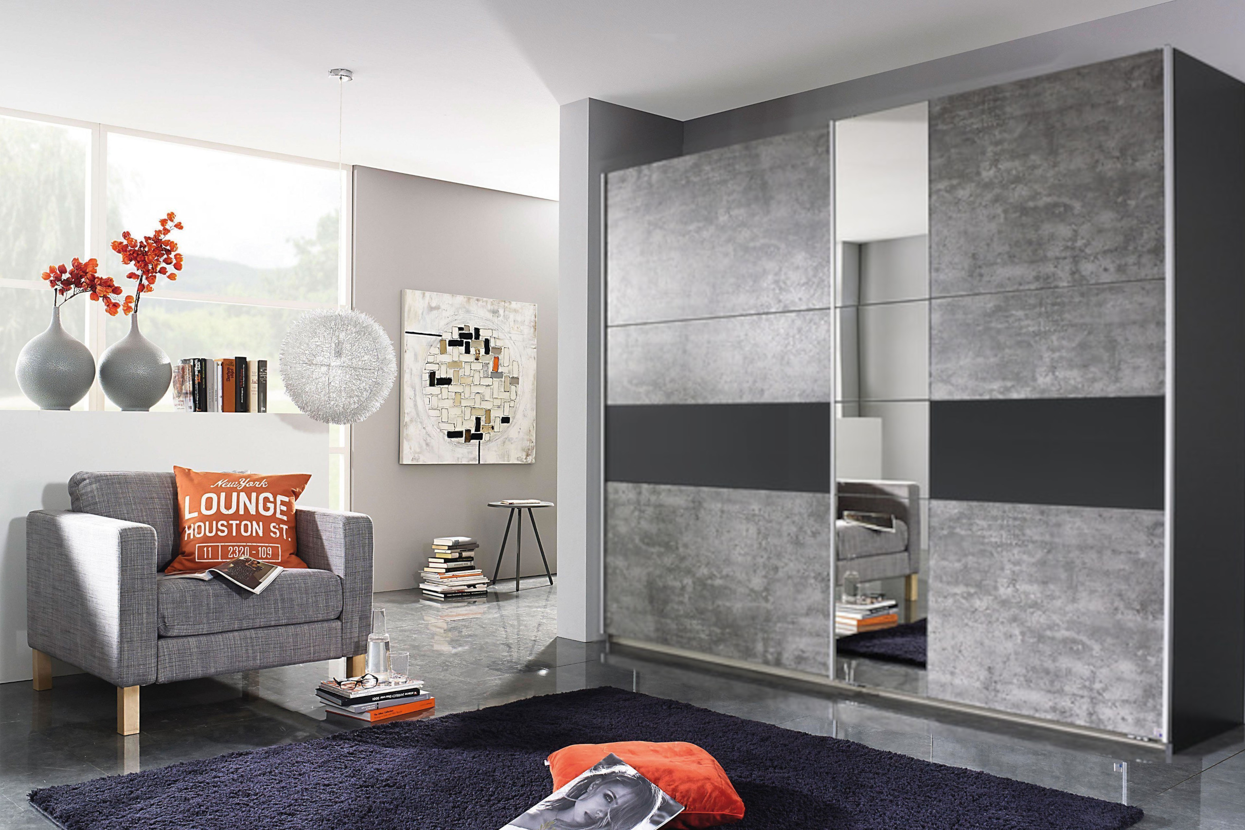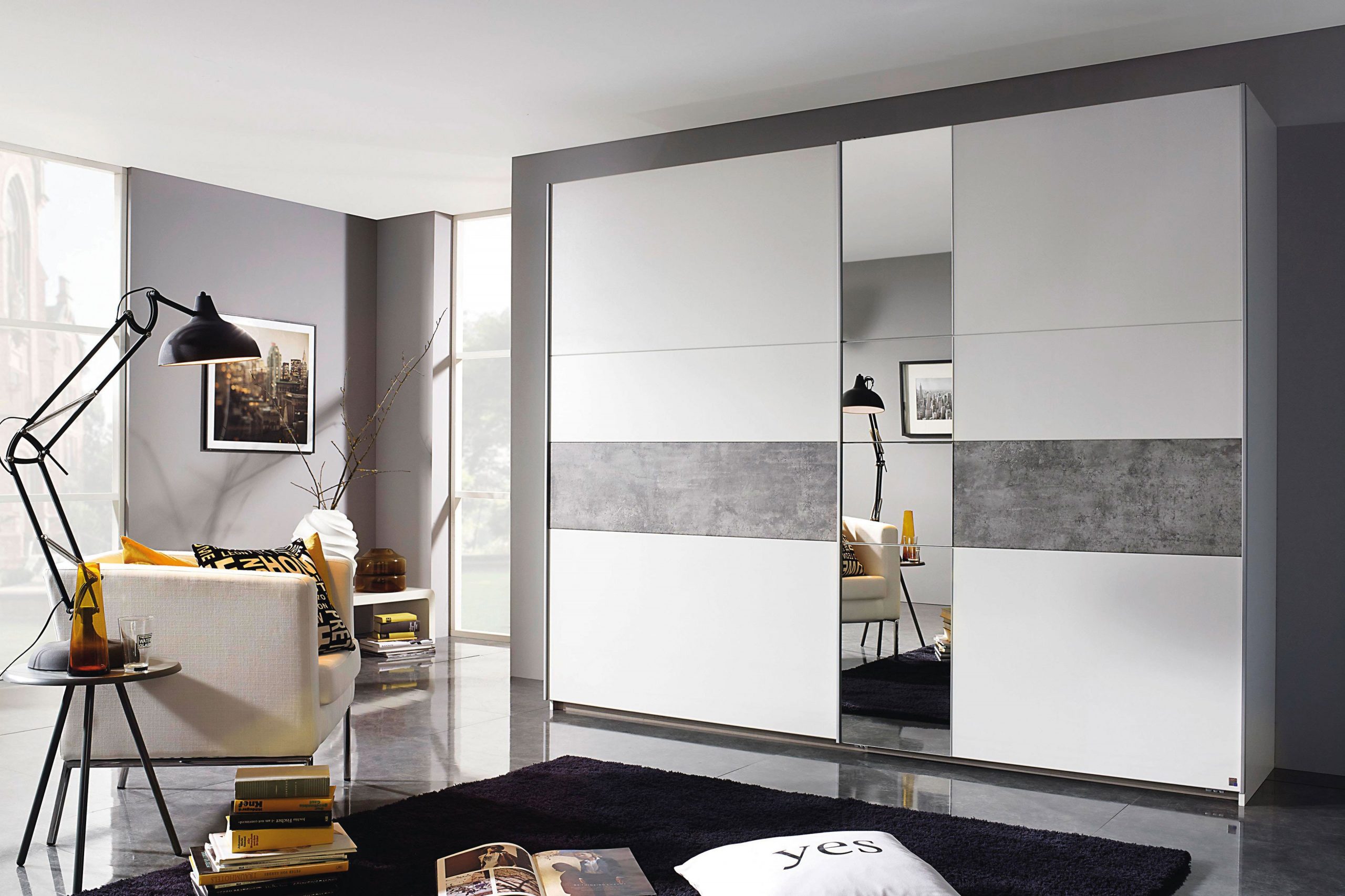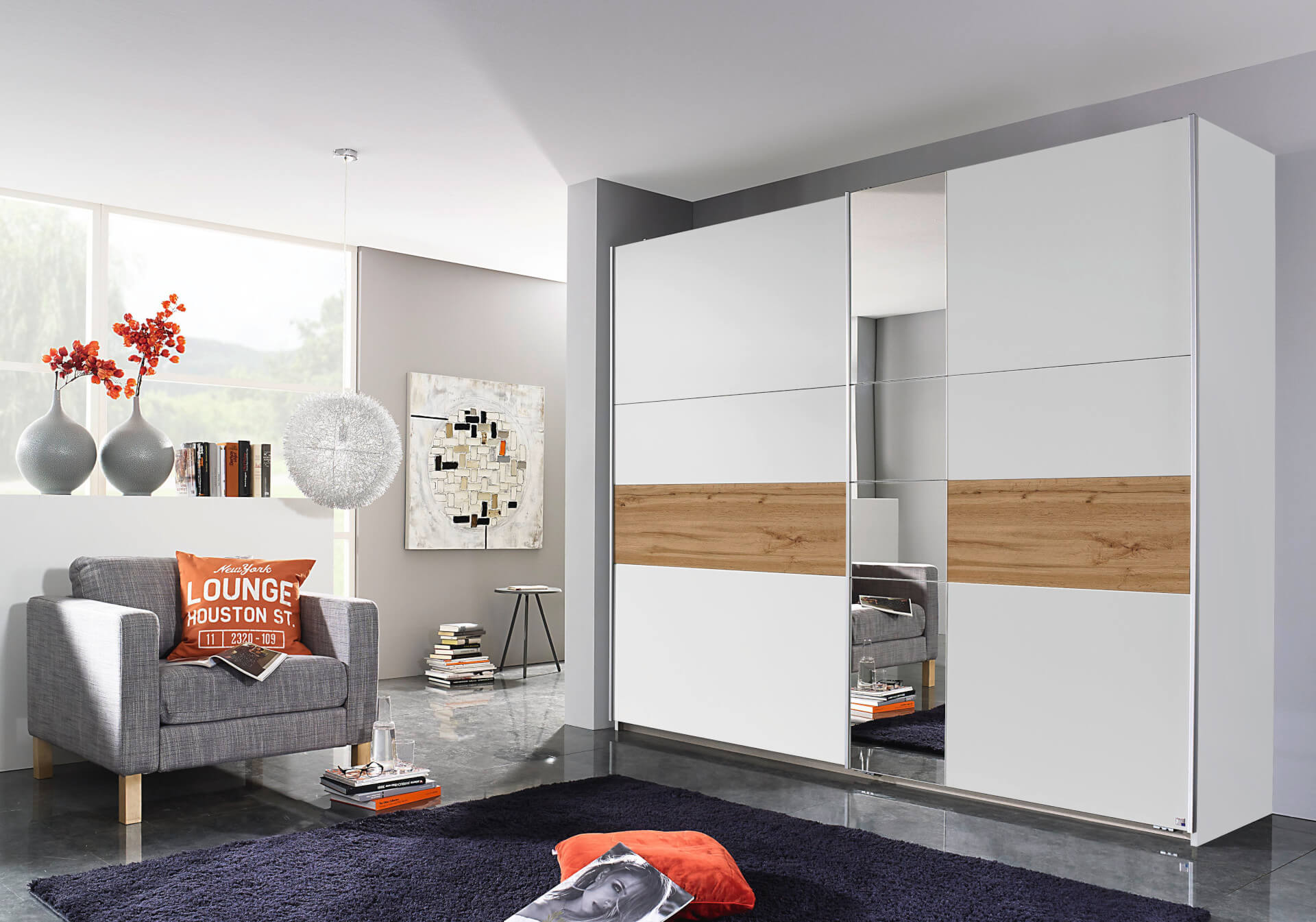 Δίφυλλη ντουλάπα από μοριοσανίδα με καθρέπτη.