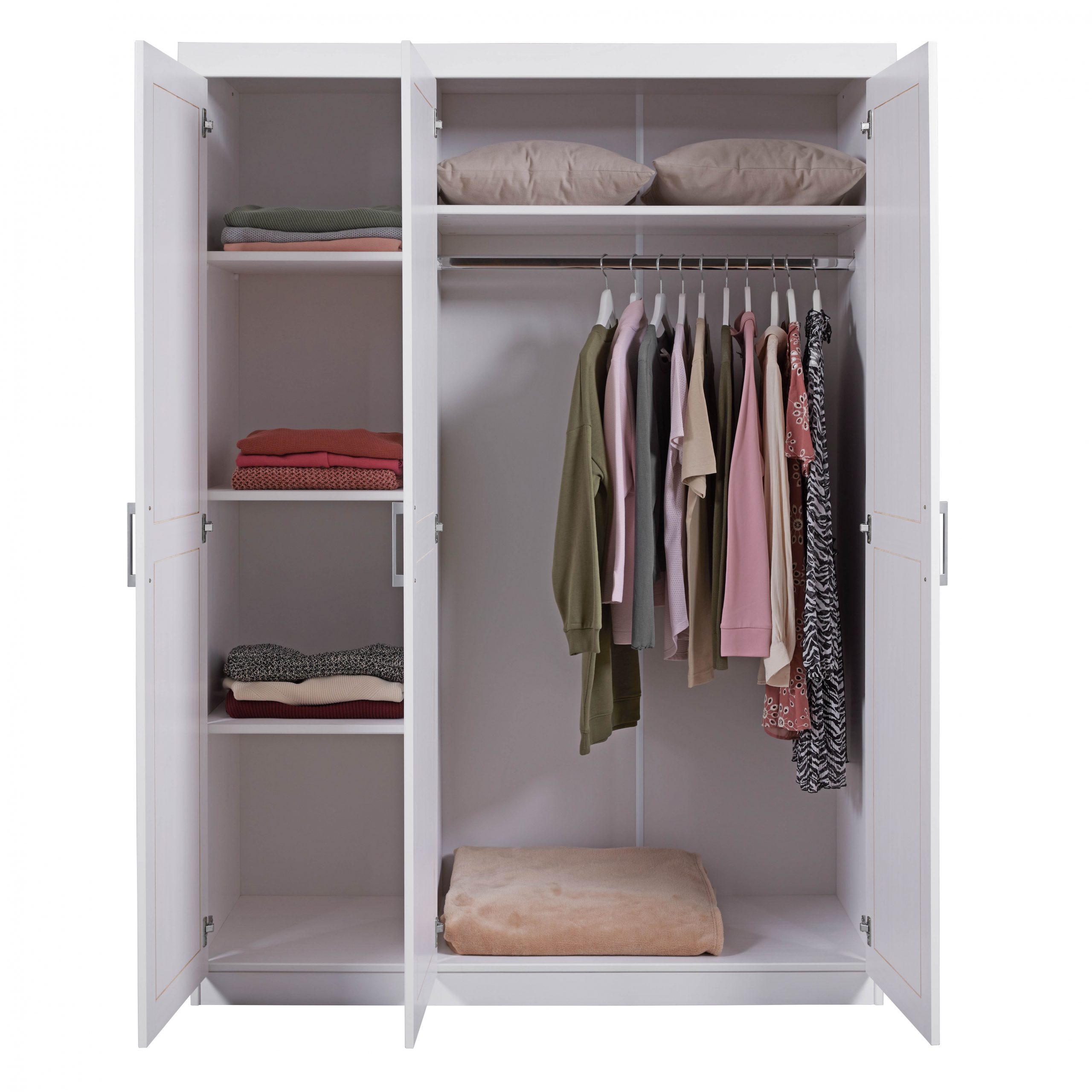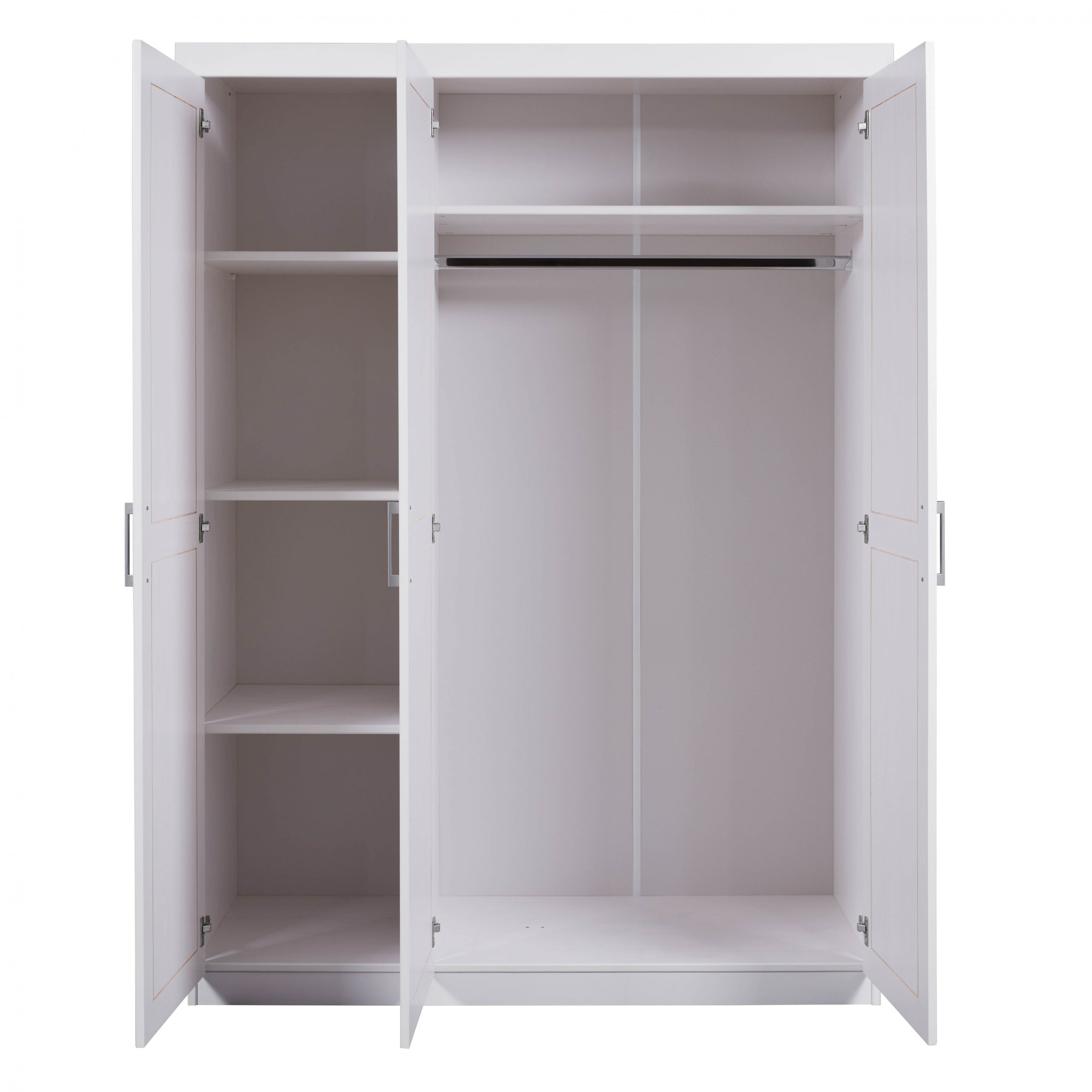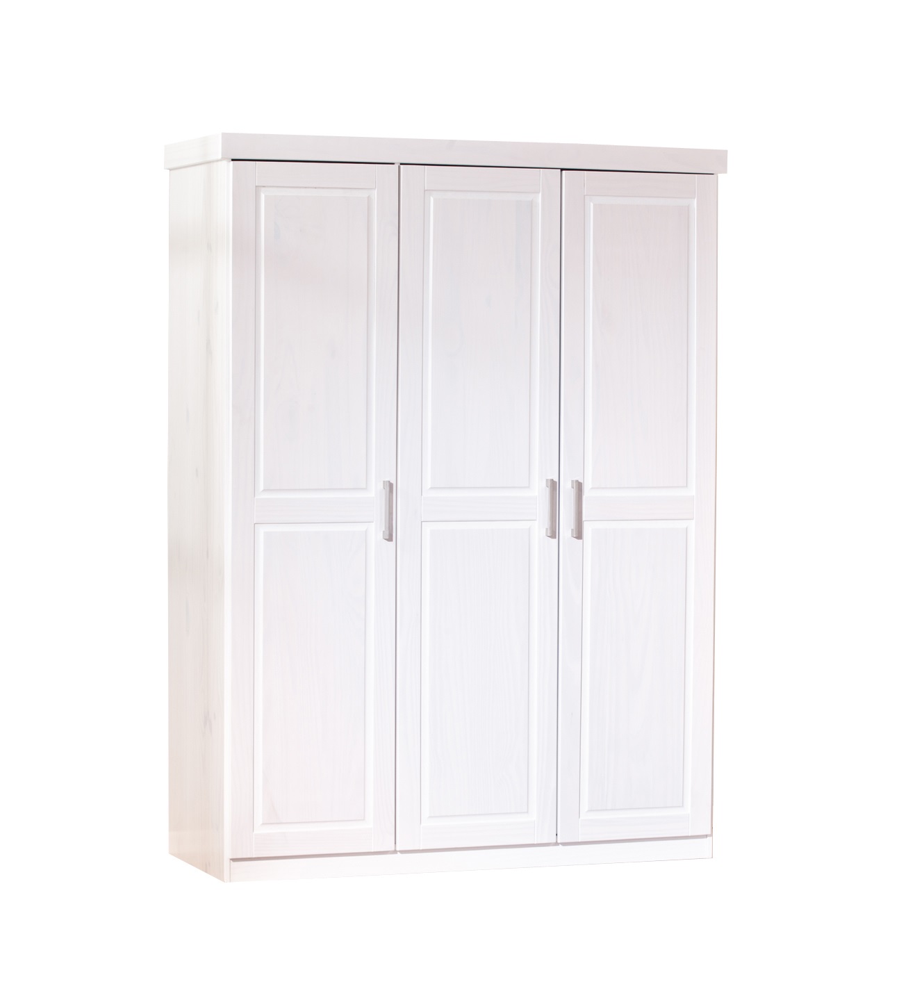 Τρίφυλλη ντουλάπα από ατόφιο ξύλο πεύκου με 4 ράφια και ράγα κρέμασης.