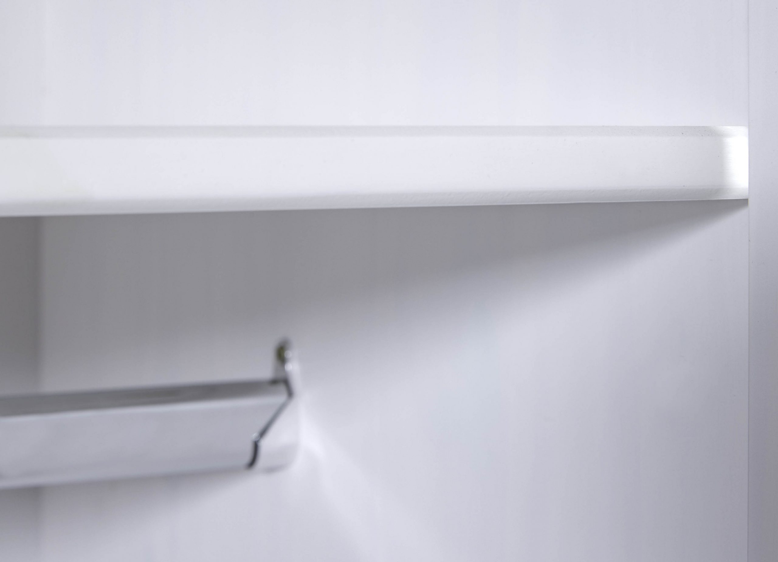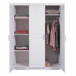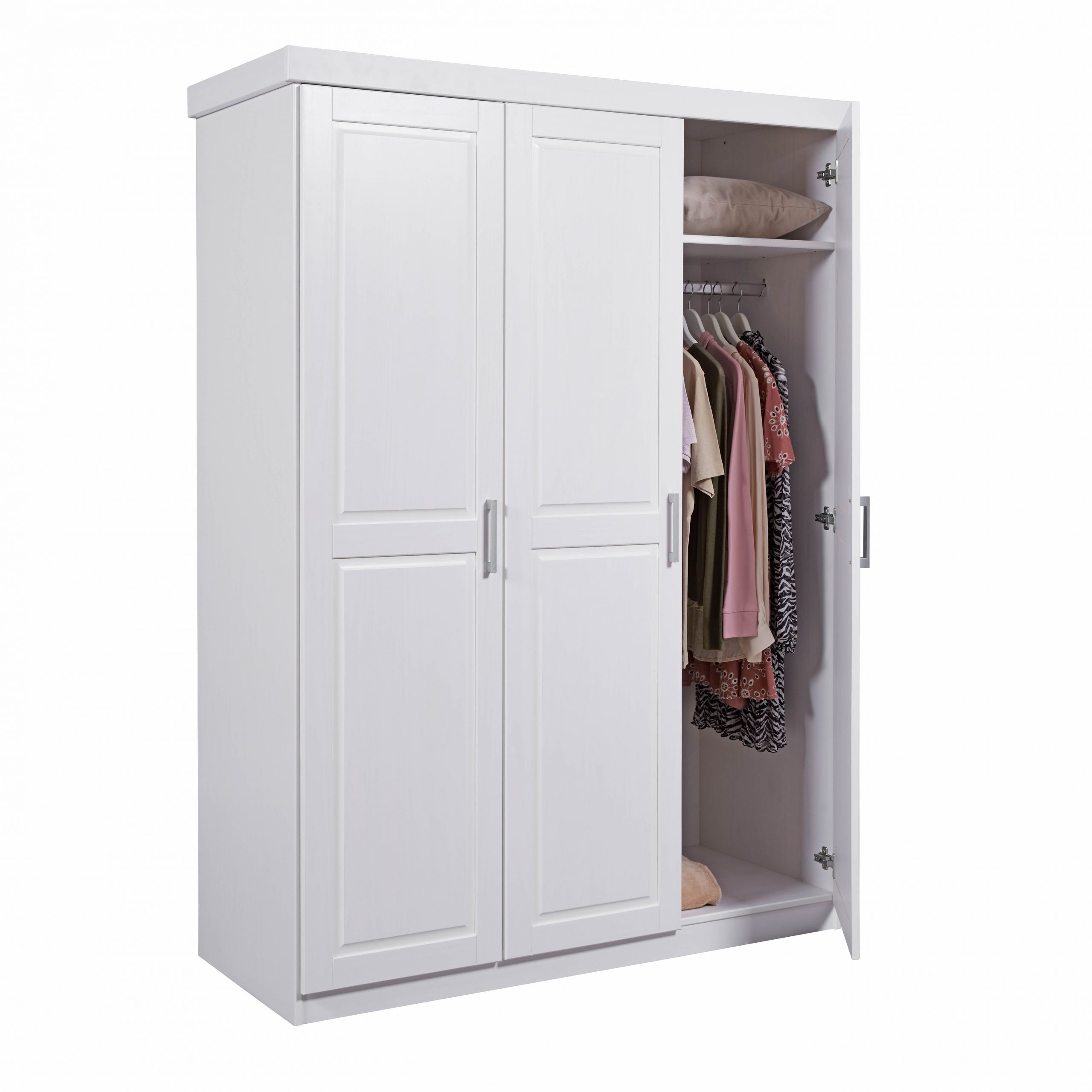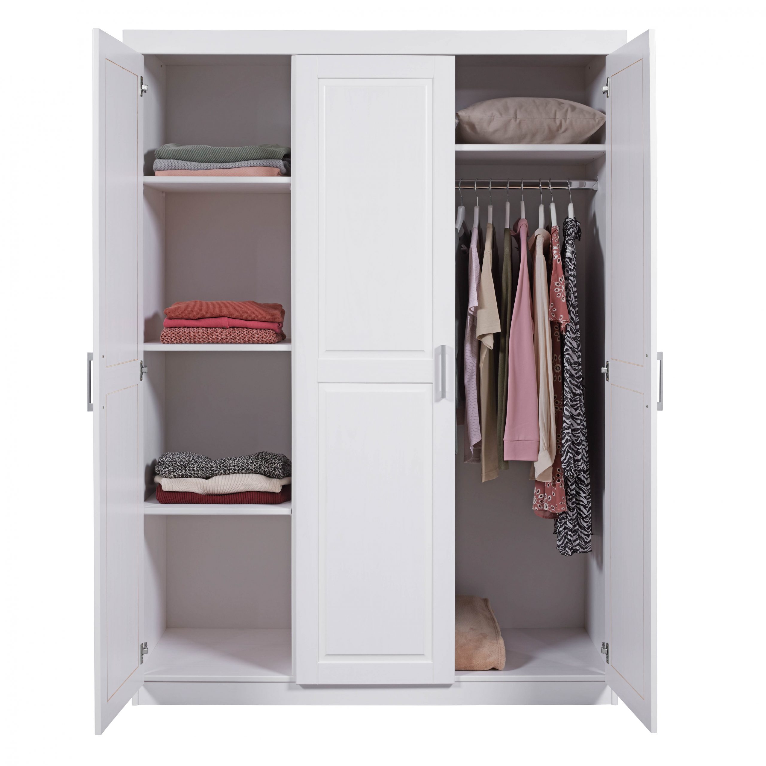 Τρίφυλλη ντουλάπα από ατόφιο ξύλο πεύκου με 4 ράφια και ράγα κρέμασης.