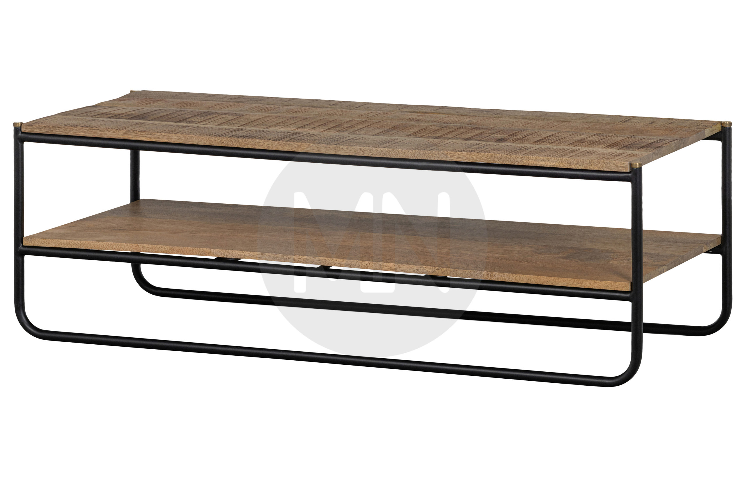 Τραπεζάκι σαλονιού 2 επιπέδων με επιφάνειες από ξύλο μάνγκο και μεταλλικό σκελετό.